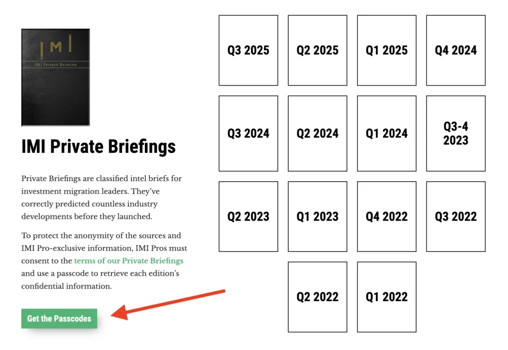 Due to the sensitive nature of our Briefings, you will need to provide your name and email and consent to our terms before accessing the passwords. Access the Private Briefing passwords via the consent form in the IMI Pro Members Lounge (as shown in the image below).