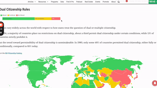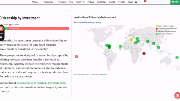 Sort and search through 843 different ways to get citizenship in 195 countries: