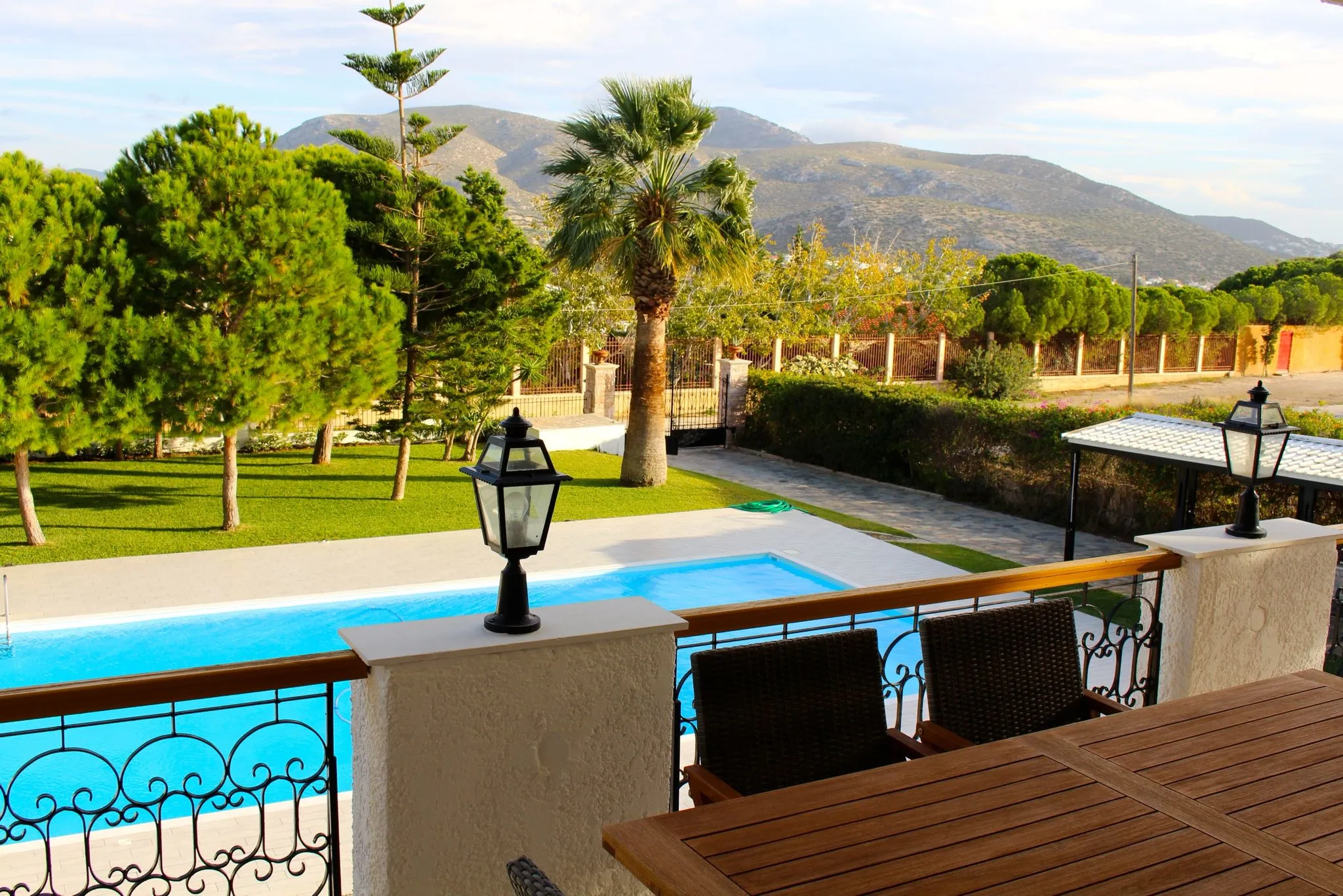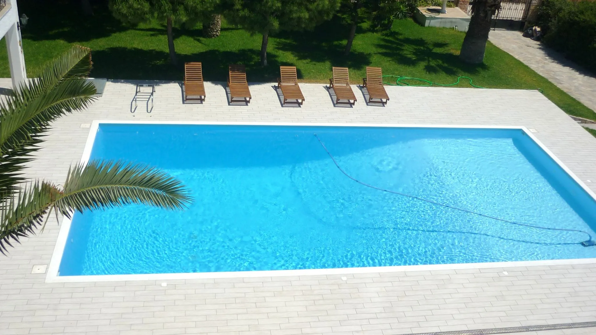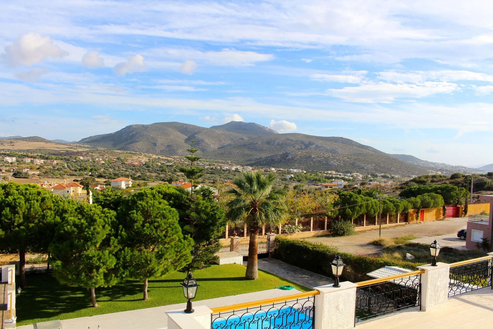 This 264-square-meter Greek estate with a pool and orchard sits on nearly 2,000 square meters of landscaped grounds in Lagonisi, a coastal neighborhood on the Athens Riviera sometimes called the “Greek Malibu.” The property is 800 meters from the Saronic Gulf, 20 minutes from Athens International Airport, and 45 minutes from central Athens.
