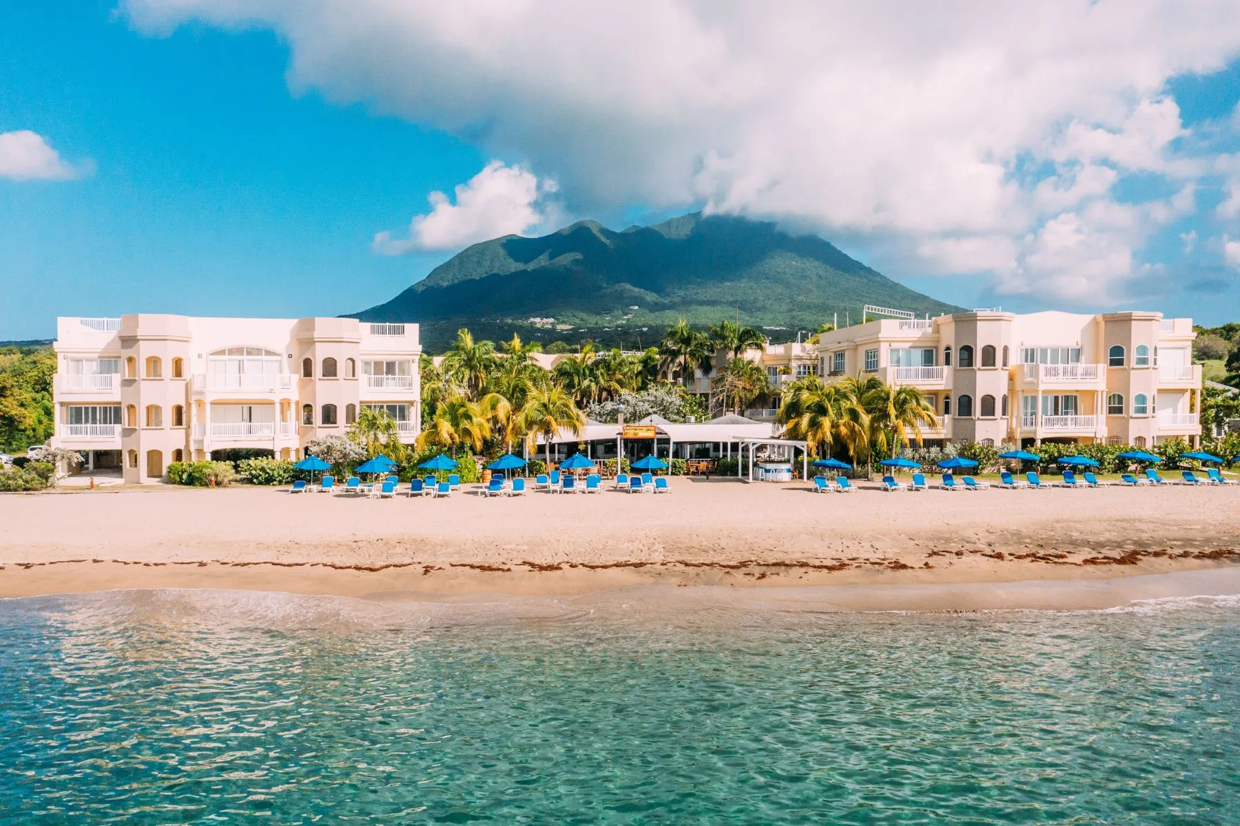 This one-bedroom beachfront residence is part of Beach Villas & Spa on Pinney’s Beach, one of the most established coastal stretches in Saint Kitts & Nevis. The 92-square-meter unit is priced at US$430,000, offering freehold ownership with ocean views, immediate beach access, and resort-style amenities including a beachfront pool, on-site dining, and a fitness center. The property is turnkey and can be placed into a rental program when not in personal use.