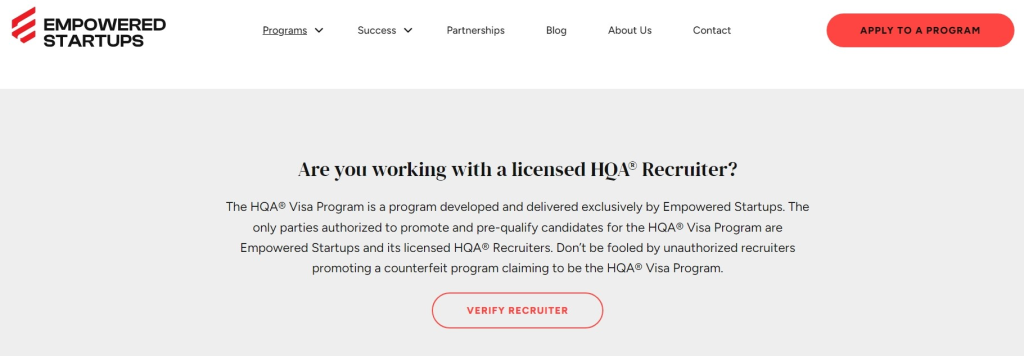 In recent months, Empowered Startups was made aware of unauthorized agents attempting to market the HQA® Visa Program. These entities were misleading clients by suggesting their programs were affiliated with the HQA® Visa Program and causing reputational damage to the program itself.