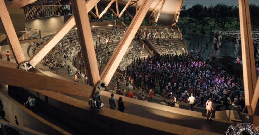 The answer takes shape across four phases. A 3,200-seat open-air amphitheater will host performances that draw both long-time Kittitians and newly arrived nationals. A dedicated theater hall provides space for private cultural programming and community briefings that facilitate the kind of sustained interaction citizenship ceremonies cannot accomplish alone.