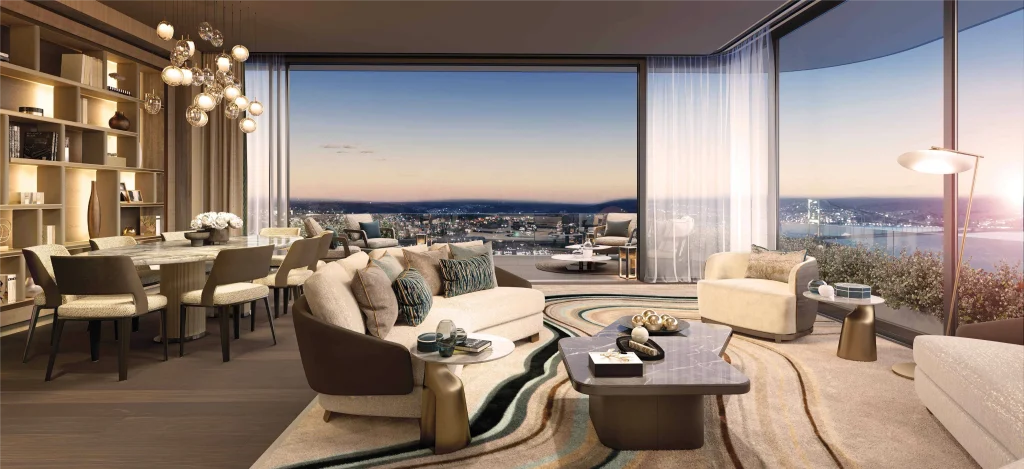 The penthouses have terraces that don’t just overlook the Bosphorus. They curate it. Asian shore catching morning light. The European side glowing at sunset. The strait performing its daily choreography of cargo ships, fishing boats, and mega-yachts navigating water that’s been the most valuable 30 kilometers on earth since people figured out that controlling it meant controlling trade.