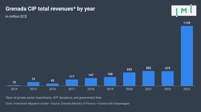 Grenada collected more CBI revenue in 2023 than in the preceding five years combined but still has a backlog worth over half a billion EC$.